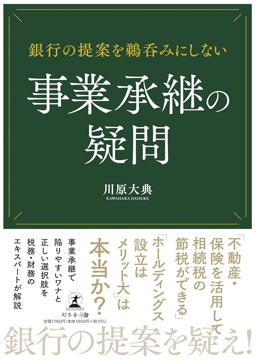 20年以上にわたってオーナー経営者の相続・事業承継と節税に特化した税財務コンサルティング会社で、税務と財務の両面から事業承継をサポートされてこられた方が著者ですって。